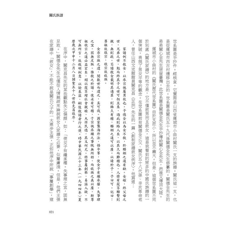 聞之,國有史,邑有志,家有乘。同一記載,而意微殊。史所以昭善政,示勸懲;志所以敘沿革,志人文;家乘之設,則序昭穆,聯族姓,上尊祖禰而不忘,下傳子孫於無窮,仁愛之心篤摯而真醇焉。然則,苟孝悌之心,勃興而不自禁,則於族譜之謀,自有殷切者矣。余閱關氏家乘,自雍正九年重修後,世代漸遠,子孫益繁,約計一百五十餘載,未曾修撰。至同治庚午歲,有後裔如漢公,恐昭穆之日久難序也,爰與闔族共議,復為修輯,族下昆弟,皆樂是舉,欣然許諾曰:「及今不敘,後必至於紊亂無稽矣。」遂因舊譜之貽名,並及歷代之配氏,按班就位,次第編輯,俾後之接踵而生者,井井不紊,如木之枝盛葉繁,非有二本;如水之支分派析,同出一源焉。不唯今日之尊卑不紊,即關氏之後裔,有達人,登國史,登邑乘,亦得考先世而溯淵源焉。事既竣,屬余為文。余不揣固陋,聊陳俚語,以待夫關氏後之作者。是為敘。