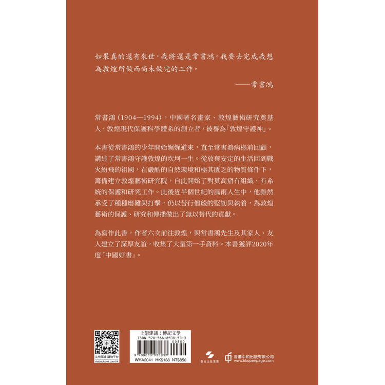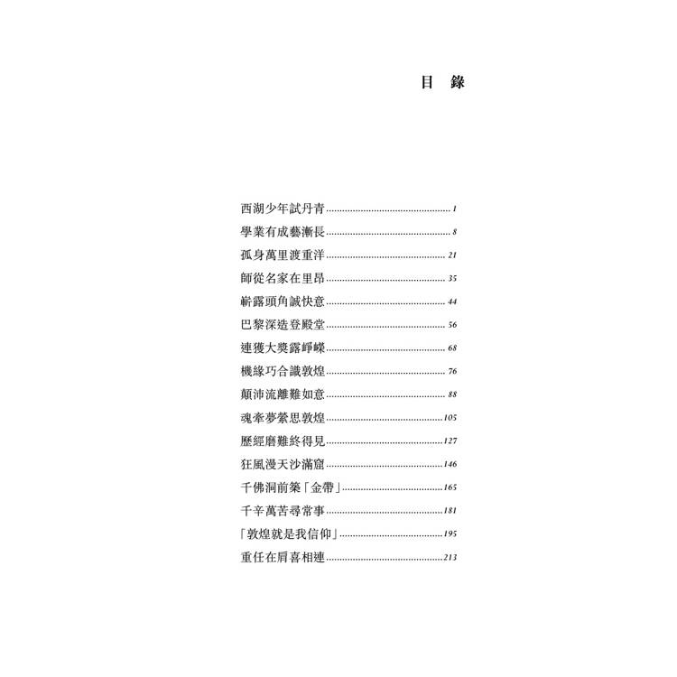 本書從常書鴻的少年開始娓娓道來,直至常書鴻病榻前回顧,講述了常書鴻守護敦煌的坎坷一生。從放棄安定的生活回到戰火紛飛的祖國,在嚴酷的自然環境和極其匱乏的物質條件下,籌備建立敦煌藝術研究院,自此開始了對莫高窟有組織、有系統的保護和研究工作。此後近半個世紀的風雨人生中,他雖然承受了種種磨難與打擊,仍以苦行僧般的堅韌與執?,為敦煌藝術的保護、研究和傳播做出了無以替代的貢獻。