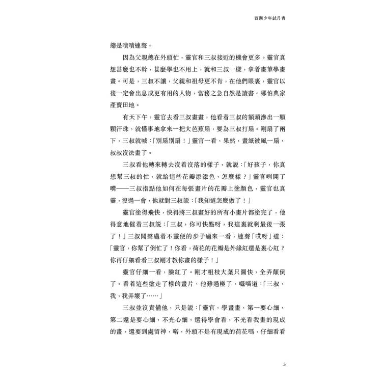 因為父親總在外頭忙,靈官和三叔接近的機會更多。靈官真想甚麼也不幹,甚麼學也不用上,就和三叔一樣,拿?畫筆學畫畫。可是,三叔不讓,父親和祖母更不肯,在他們眼裏,靈官以後一定會出息成更有用的人物,當務之急自然是讀書。哪怕典家產賣田地。