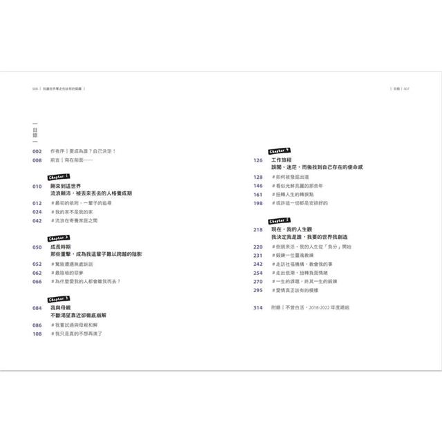 這本書,紀錄著我如何經歷、拾起、轉化再到放下的過程,很多人很好奇:「我怎麼能活成這樣?」這裡將寫下我的這一生,我選擇怎麼活?寫下這本書,寫下這些我所經歷的真實故事,不是為了指責過往的誰,我相信每個人都有屬於自己的不得已與苦衷。我只是想寫下你我所經歷、我所體會、我所成長,期許翻閱這本書的你能從中獲得一些力量,我們都能透過努力,不被環境和過去框限,而去成為自己想成為的那種人──不要讓出身或環境造就你,你要成為怎麼樣的人,是自己決定的,你要成為誰,是你決定的!