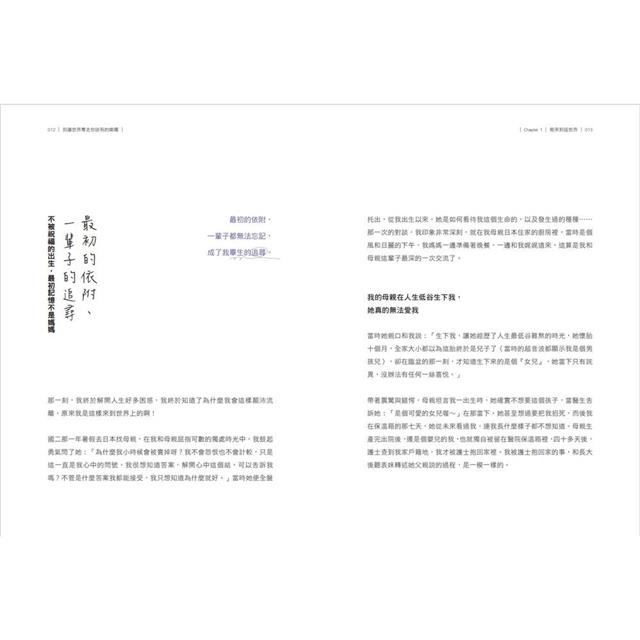 童年的我,沒有固定的家人,在超過7個不同的寄養家庭之間流連遷徙,彷彿是流浪沒人要的小孩,總覺得自己是個不該存在的錯誤、不被愛的個體,總是被丟來丟去。人生經歷過幾次重大創傷,沒有人發現、關心,多少個滿腹委屈的夜晚,也無處訴說.....