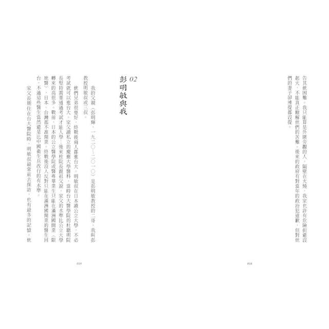 本書作者是彭明敏教授的姪子彭昤,讓外人得以一窺彭明敏教授受難前後,彭家人的遭遇、行誼跟不足為外人道的心酸。