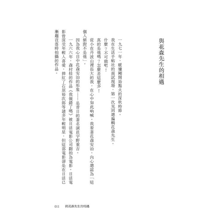 「不曉得你知不知道,總編輯花森先生有點與眾不同。他可以說是天才型的人物,做事風格沒有辦法以常理度之,你得有心理準備。曾經有新人三天就辭職了……你好好保重,至少別把身體搞壞了。」