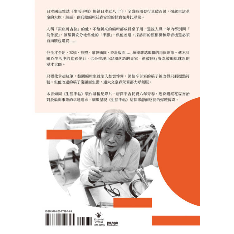本書作者唐澤平吉正是花森安治的「徒弟」。他在花森安治生命最後六年與其共事,親眼目睹這位被譽為「天才」的編輯人如何把對美感的講究,落實在生活的一針一線、一字一句之中。他的完美主義讓徒弟們吃不消,但也確保了《生活手帖》內容的高品質與呈現的美感。在他手中,《生活手帖》不只傳遞生活的美好,更成為一場現在進行式的社會實驗。