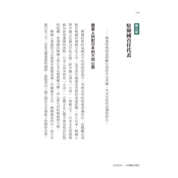 閱讀一本外交回憶錄,常常會讓人期待看到「內幕」與「秘辛」。然而,翻開《外交老兵─林尊賢回憶錄》,我卻感受到另一種不同的力量:一種來自生命真實經驗的沉澱,一種既平凡又厚重的人生見證。