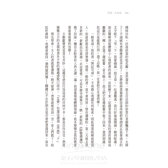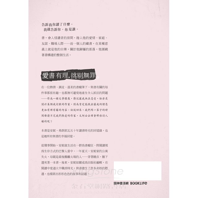 書,會入侵讀者的房間,捲入他的愛情、家庭、友誼、職場人際……而一個人的藏書,在某種意義上就是他的自傳,關於他歸屬的部落,他圍繞著書構建的整個生活。
