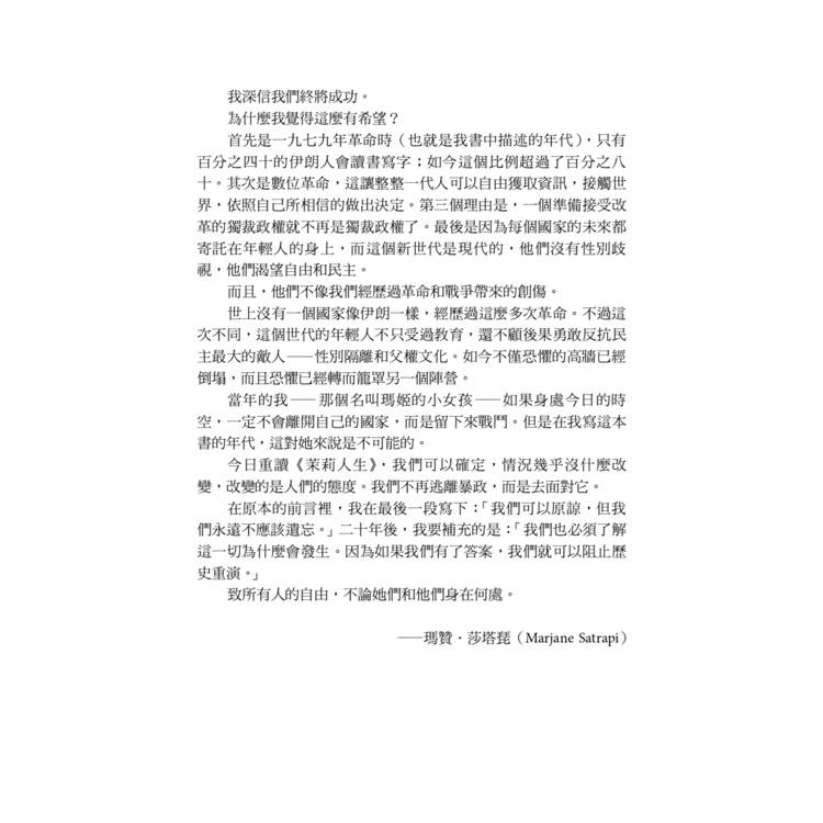 ★ 作者瑪贊.莎塔琵(MARJANE SATRAPI)被譽為改變世界的女性創作者之一