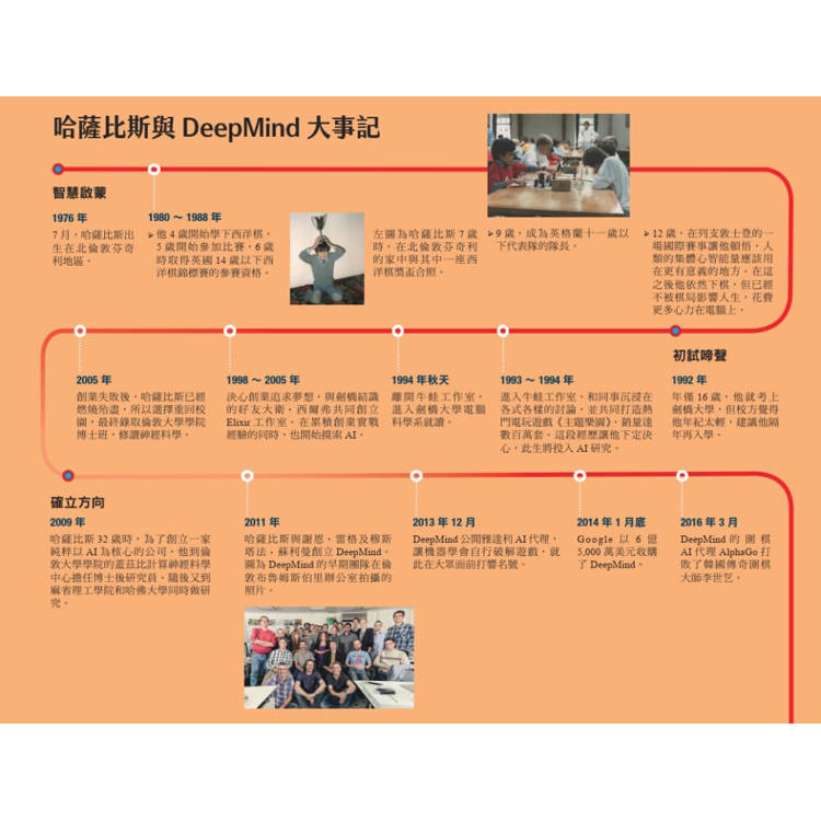 即便從天才輩出的科技業人才標準來看,哈薩比斯仍是異數。他五歲就成為西洋棋神童,十七歲共同創作出熱銷百萬的電玩遊戲,隨後進入劍橋大學電腦科學系就讀,跨界取得神經科學博士學位。為了揭開生物學與物理學的奧祕,他與志同道合的夥伴創立DeepMind,要打造一種能夠像人類一樣思考、推理、學習的智慧機器。