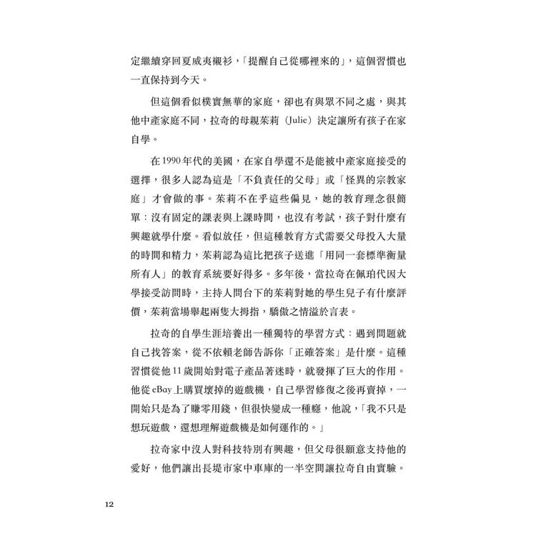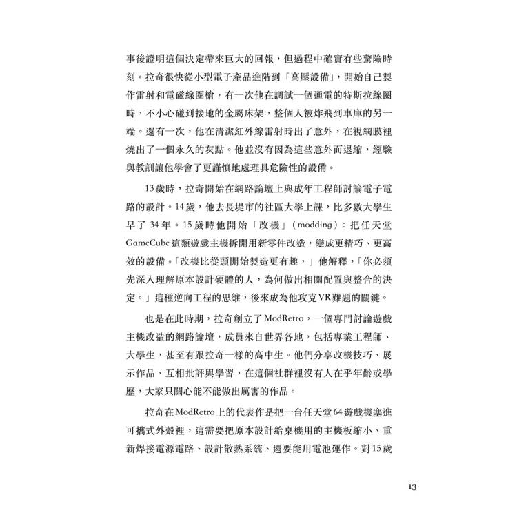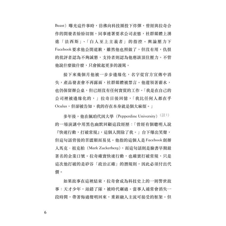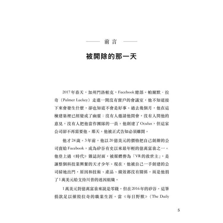 「這不單是帕爾默.拉奇的自傳,透過他的成長、挫折與蛻變,看見美國基礎科學的紮實、矽谷的異變及軍工產業的再造。它是理解現今美國科技轉變與文化衝突的絕佳好書。」