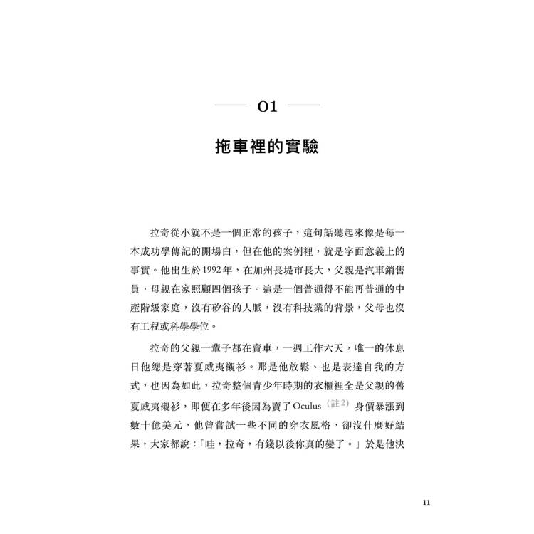 這不單是帕爾默.拉奇的自傳,透過他的成長、挫折與蛻變,看見美國基礎科學的紮實、矽谷的異變及軍工產業的再造。它是理解現今美國科技轉變與文化衝突的絕佳好書。