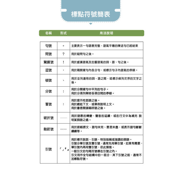 ● 聚焦難點,精準分析:本書逐一探討一般教材不曾涉及的特殊用法和誤用情形,針對容易混淆的符號,及其他特殊用法更詳細說明解析,幫助孩子避免發生混淆誤差,完全符合考點要求的寫作規範。