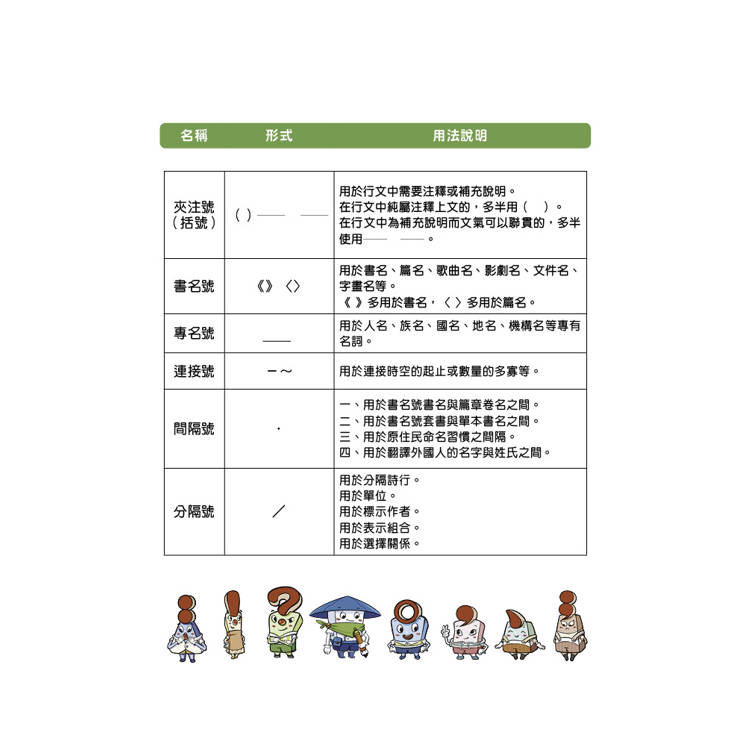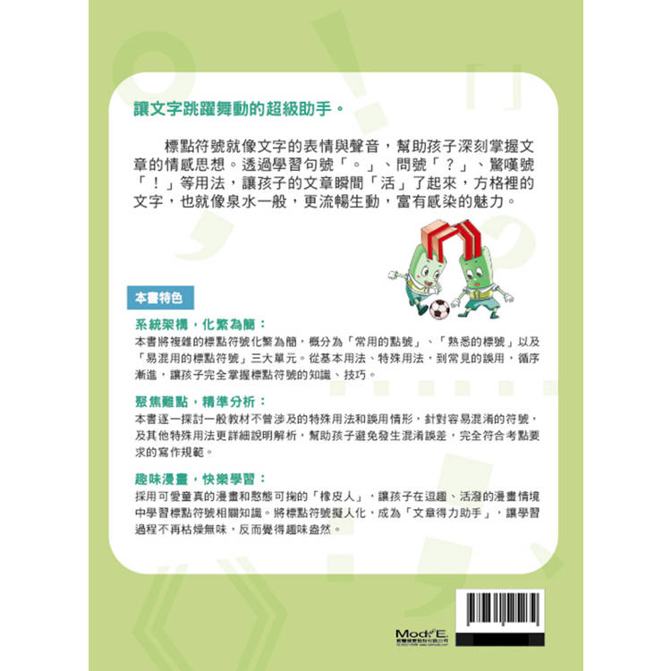 ● 系統架構,化繁為簡:本書將複雜的標點符號化繁為簡,概分為「常用的點號」、「熟悉的標號」以及「易混用的標點符號」三大單元。從基本用法、特殊用法,到常見的誤用,循序漸進,讓孩子完全掌握標點符號的知識、技巧。
