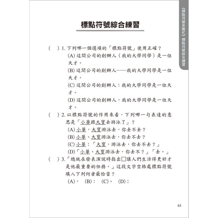 本書是《標點符號來幫忙》的自我測試,也是知識轉化為能力的金鑰匙!