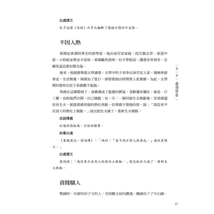 學習成語最忌諱的是單單從字面上來理解它的意思。本書取材廣泛,體例新穎,注重知識性、準確性、可讀性和趣味性的統一。在條目方面,著重選取了實用性強,同時對讀者具有啟發和教育意義的成語故事;在內容上深入淺出,語言通俗易懂,適合各個層次的讀者理解與記憶,將一個個膾炙人口的成語故事呈現給讀者。
