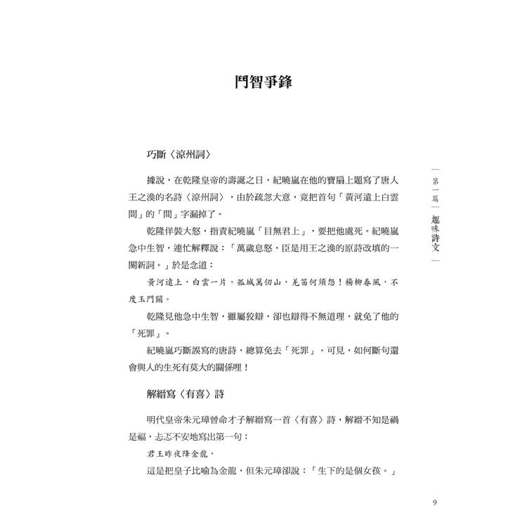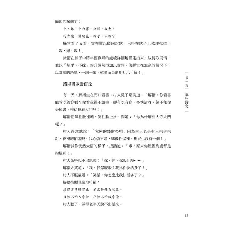 本書中的對聯、謎語、幽默詩賦、奇趣妙語,其中集納了大量的歷史細節,這些細節豐潤、真切、逼真地再現了過去的種種情境,或引人發笑,或讓人辛酸,或悲傷,或動人。沒有細節的歷史和沒有細節的人生是乏味的,而且讓人難以相信,細節如此充滿張力,如此直達人的內心深處。