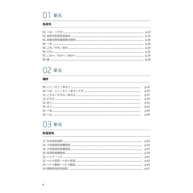 本書適合已熟悉日語平假名、片假名,且稍微學習過日語入門前幾堂課程的讀者閱讀。編排上,是依照難易度,由淺入深。各文法項目的例句,盡可能使用前面章節已學習過的文法,但對話及閱讀的部分會預先使用下一單元或者下兩單元即將學習的文法,事先預習。這些使用到後面才會出現的文法時,也會於例句後方加上參照註明。