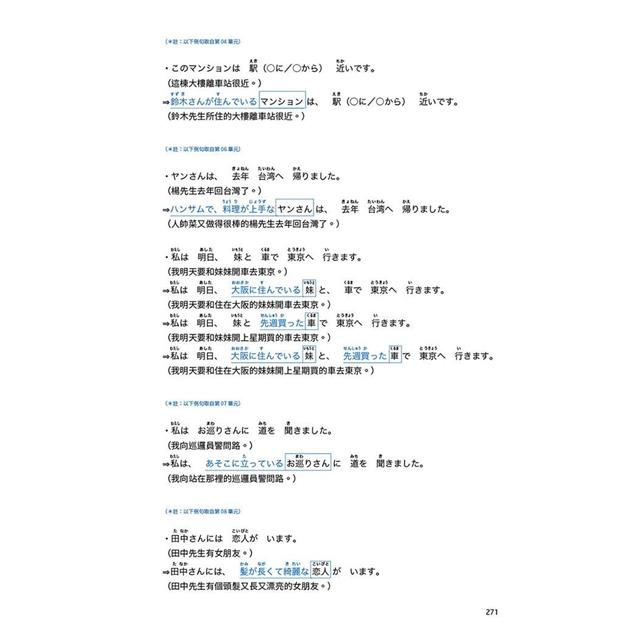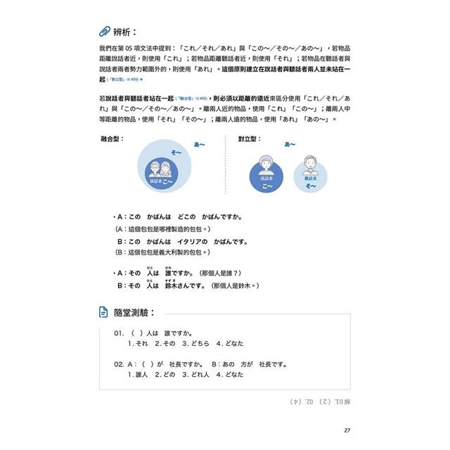 本書適合已熟悉日語平假名、片假名,且稍微學習過日語入門前幾堂課程的讀者閱讀。編排依照難易度,由淺入深、輔以實用對話、由淺入深詳細解析,例句皆附中譯、標註假名!