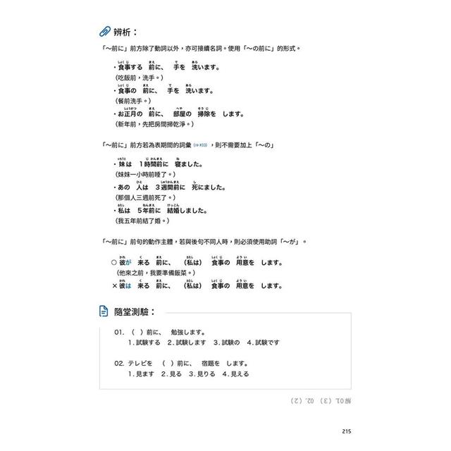像這樣,N5考試的範圍當中,其實有許多「你以為簡單,但其實不簡單」的文法觀念。正所謂魔鬼藏在細節裡,初級階段,即便不瞭解這些細節,仍然可以輕鬆考過檢定,但一旦到了中、高級,若是對於N5入門日語裡的文法知識似懂非懂,就很有可能讓你的日文能力一直卡關,很難向前邁進。「穩紮穩打」系列,就是建立在這樣的理念上所編寫的系列叢書。因此儘管只是N5程度的入門文法,本書還是厚達306頁,精實程度是坊間其他競合產品所未見的。