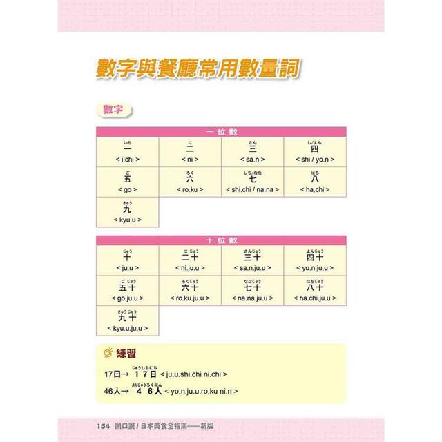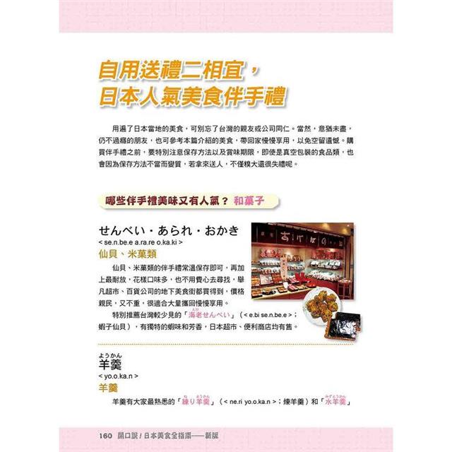 2.保證好用:您知道壽司的單位用日文說是「貫」(< ka>;個)嗎?大碗又該怎麼說呢?最實用的點餐相關句型、美食單字及餐飲會話,教您如何正確點餐。不論是內用、外帶,還是行家才懂的點菜行話,連日本人都忍不住讚嘆:您真內行!