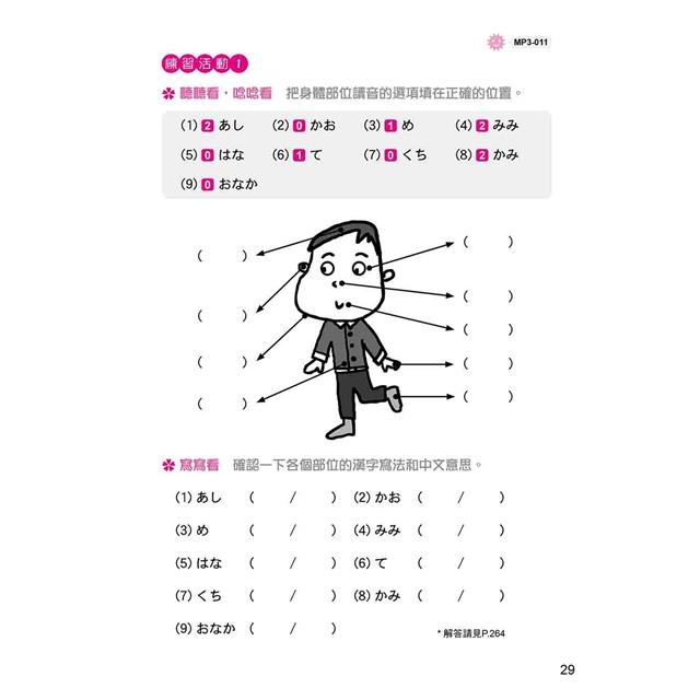 「聽聽看」、「說說看」、「寫寫看」,各種練習活動穿插在課文中,聽、說、讀、寫一併練習,讓你不會顧此失彼。