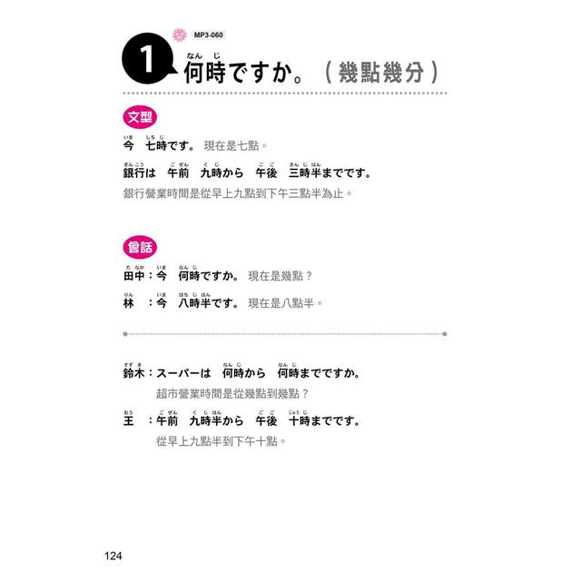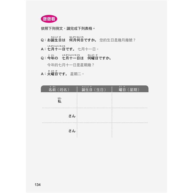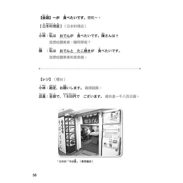每課都有基本文型和簡短實用的生活會話,搭配「說說看」延伸練習,讓你一邊學一邊就能開口說日語。