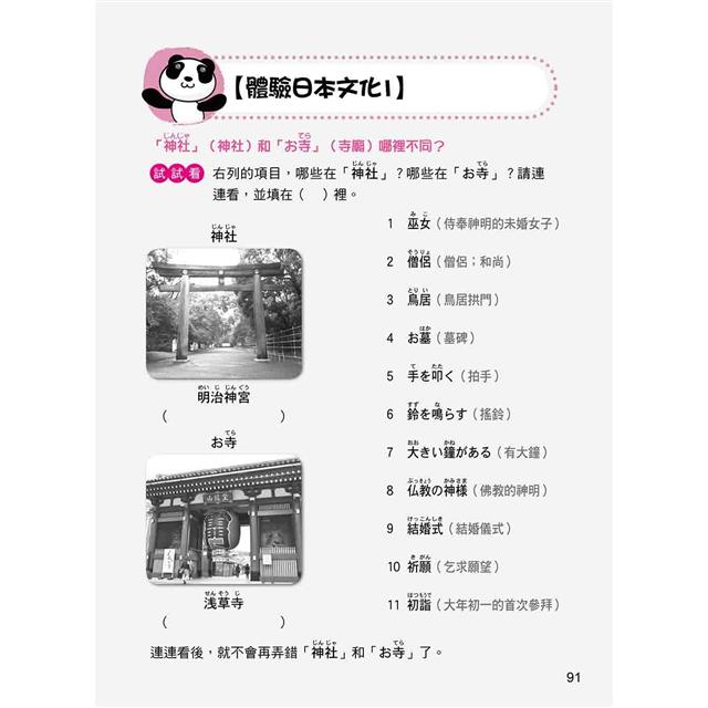 你知道「神社」和「寺廟」有哪裡不同嗎?什麼是正確的參拜神社的方法和禮節?本書隨時穿插日本文化體驗,不但可以轉換學習心情,也能更了解日本,成為道道地地的日本達人!