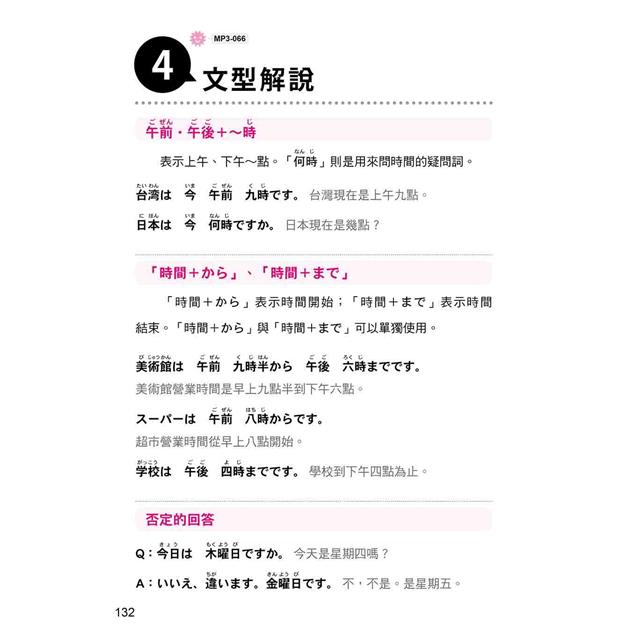 每課的「文型解說」,讓你從最簡單的會話或句子中就能學習基礎文法,此外還有大量例句,輕鬆無負擔就能逐步累積文法實力。