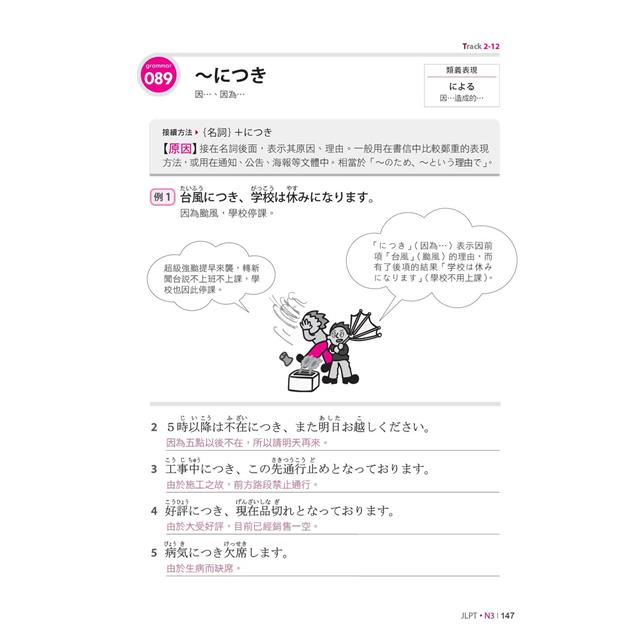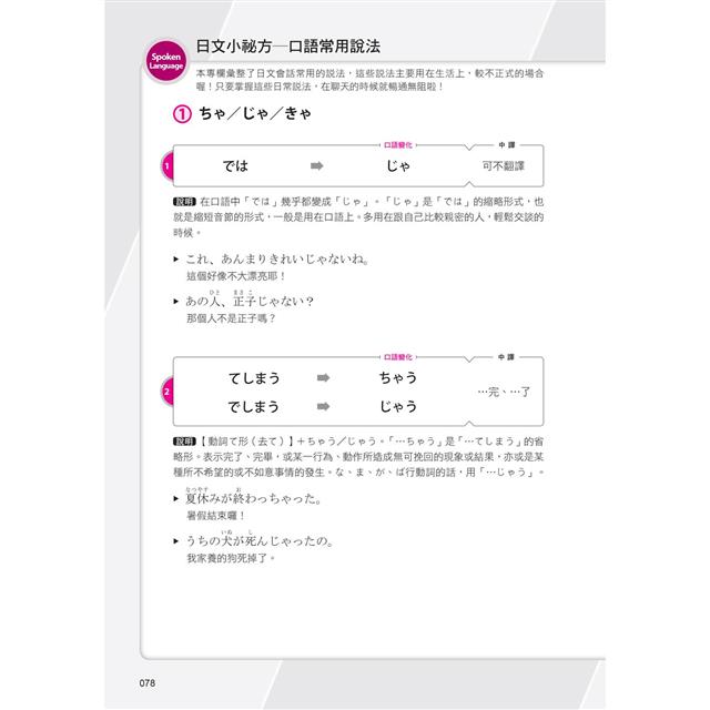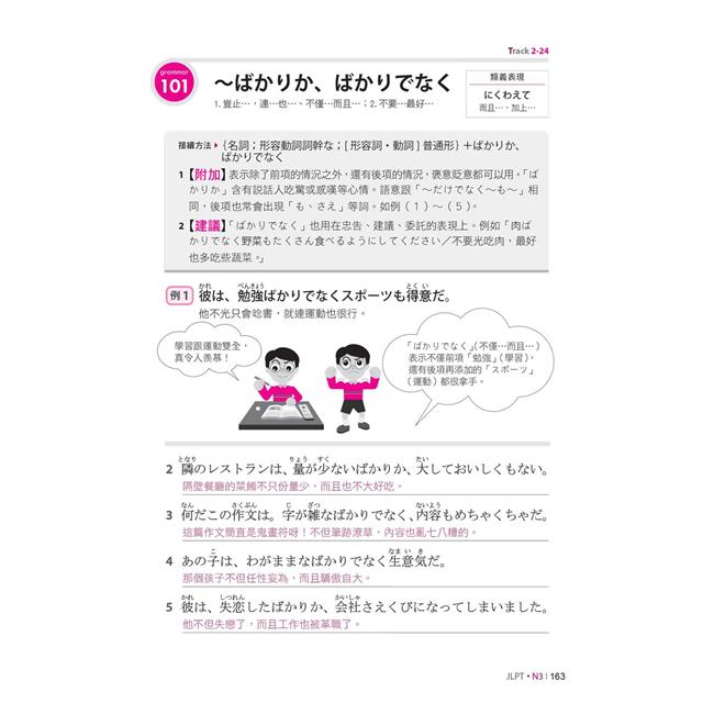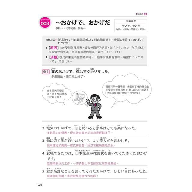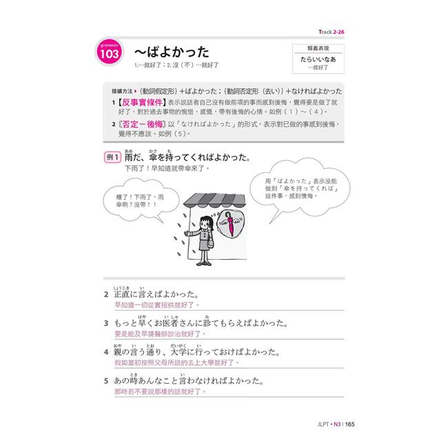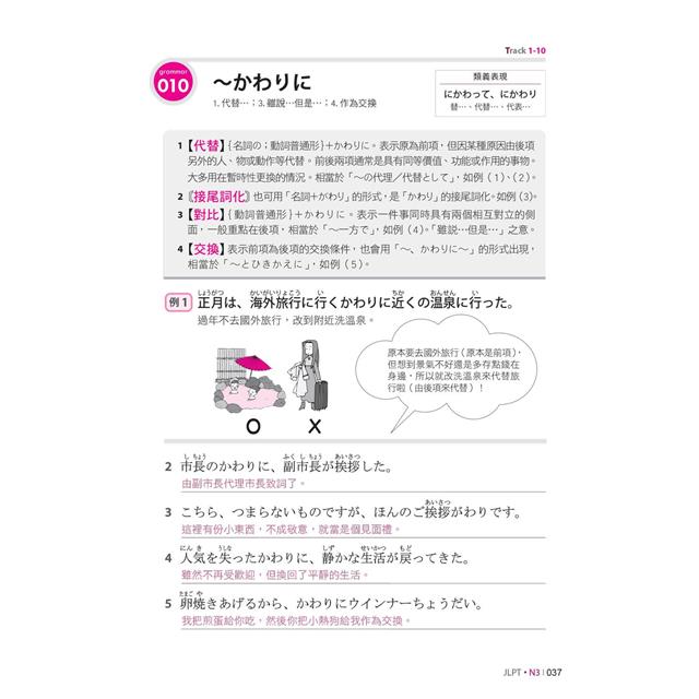 邁入N3的大魔王關卡——口語表現,是否讓您感到瀕臨崩潰?在各單元間,我們為您整理了日語口語小專欄,以及創意無限的文法升級小專欄共7回,讓您在消化基礎文法知識後,向上「展翅翱翔」!呈現給您一個豐富多彩又邏輯清晰的深度教學,為您提供迎戰日檢的關鍵得分點(如口語縮約型的變化等),做足了萬全準備,成功自然觸手可及!