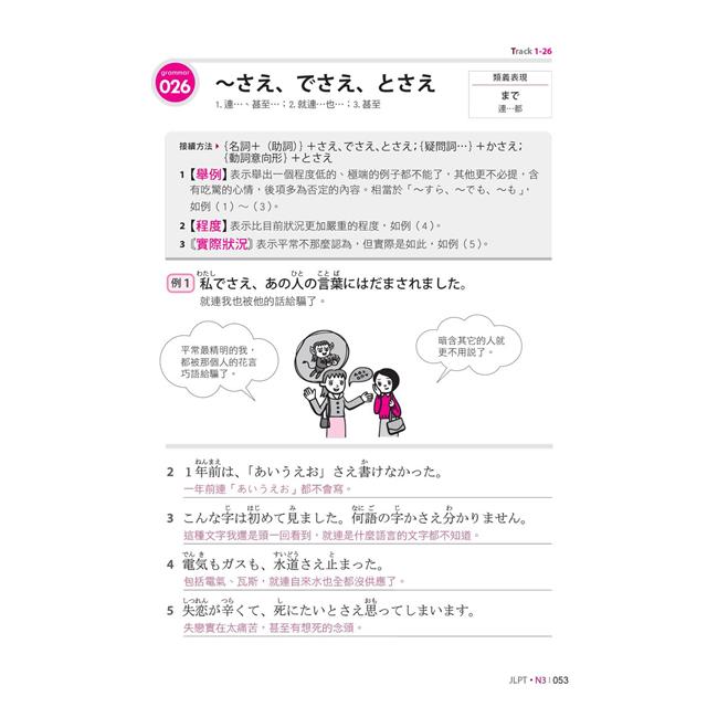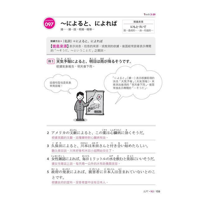 嘿,別以為學日文只是學點文字,聽力也超重要!本書可是有大招,所有的日文句子都是由日籍專業老師來示範的,我們保證,發音、語調,統統對標N3新制考試標準。