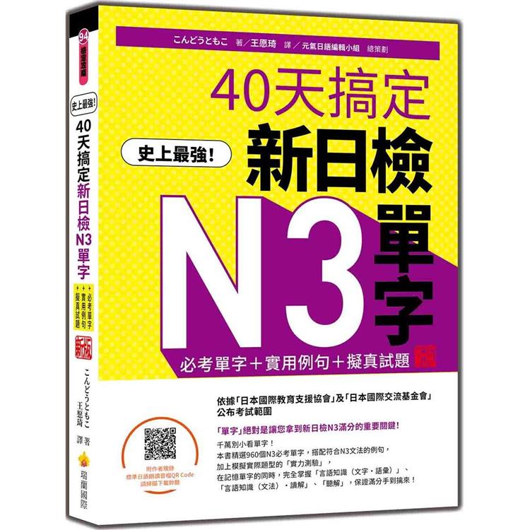史上最強!40天搞定新日檢N3單字:必考單字+實用例句+擬真試題 新版(隨書附作者親錄標準日語朗讀音檔QR Code)
