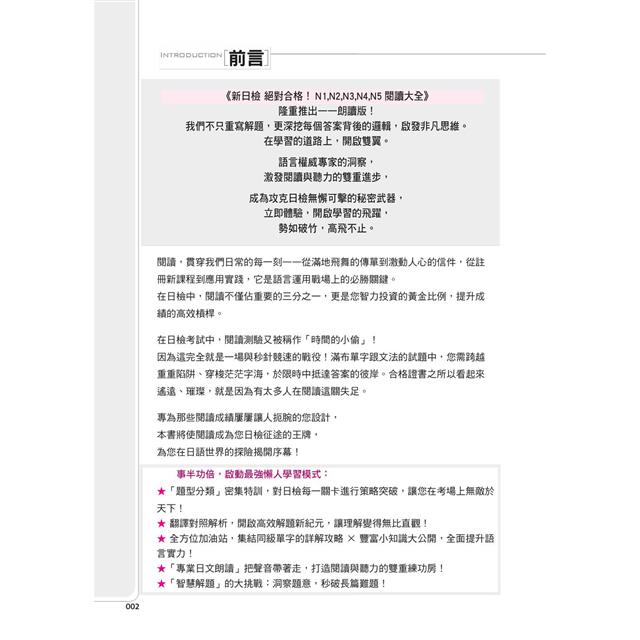前所未見,全新日檢N1至N5閱讀一網打盡!