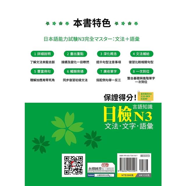 保證得分!日檢言語知識– N3文法.文字.語彙 (QR)