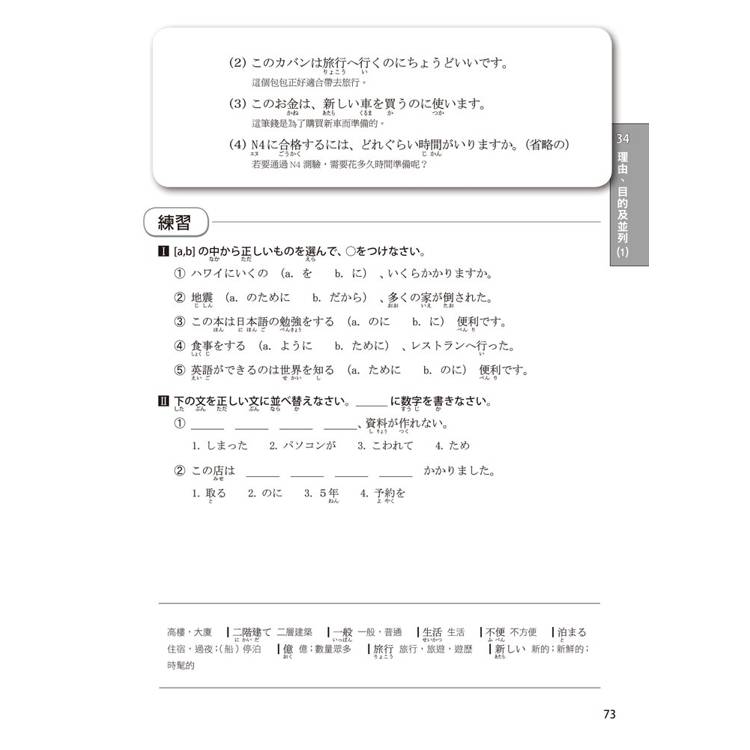 根據N4考試設計,全面涵蓋各種生活情境,從表達可能、希望,到理由、條件,讓生硬的文法自然融入生活,像喝水一樣輕鬆掌握!