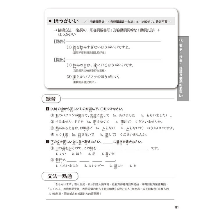 38.要求、授受、助言と勧誘の表現⑵/要求、授受、提議及勸誘的表現⑵