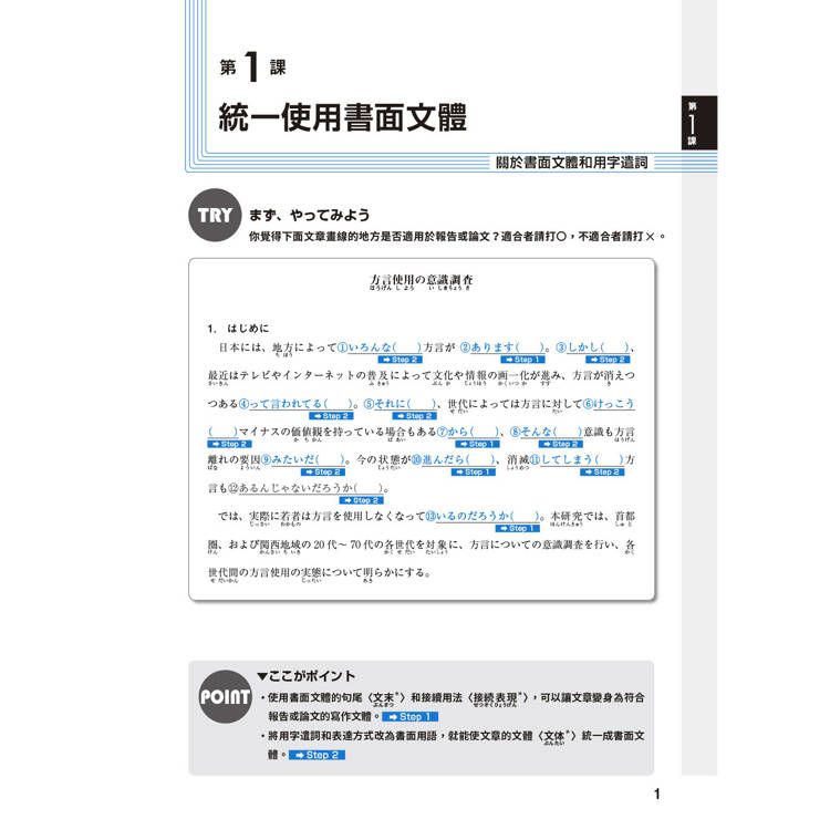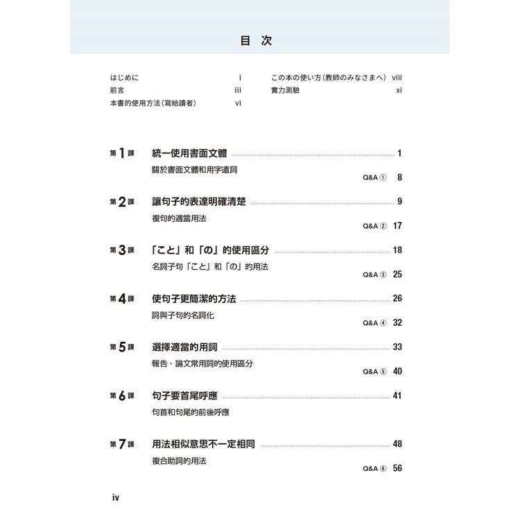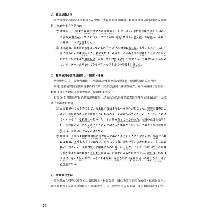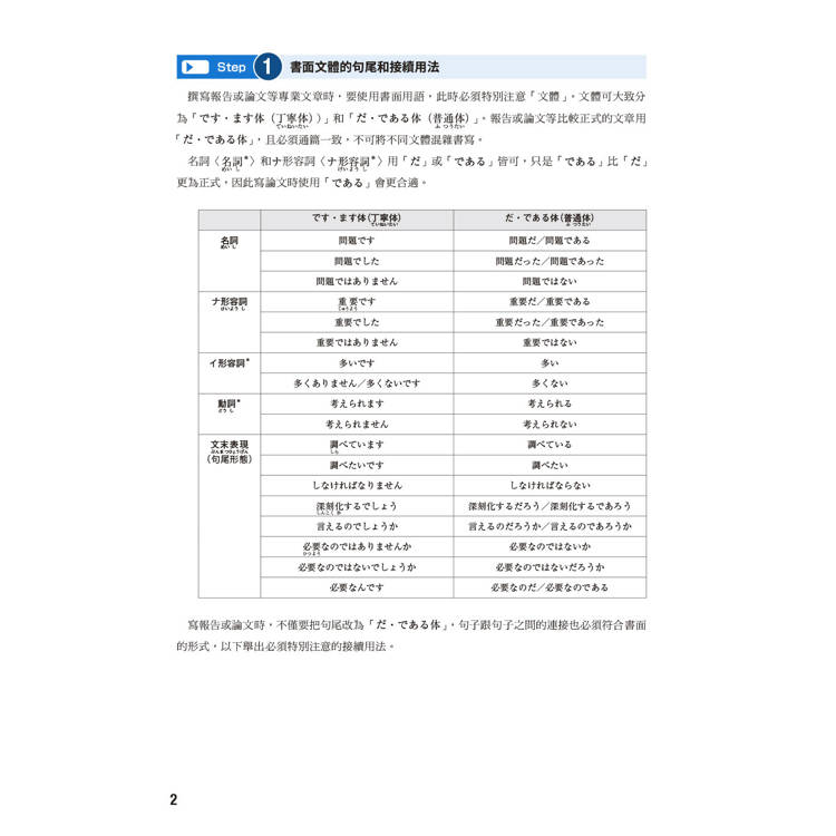 ・本書囊括了日語學習者在撰寫報告或論文時容易出錯的文法。