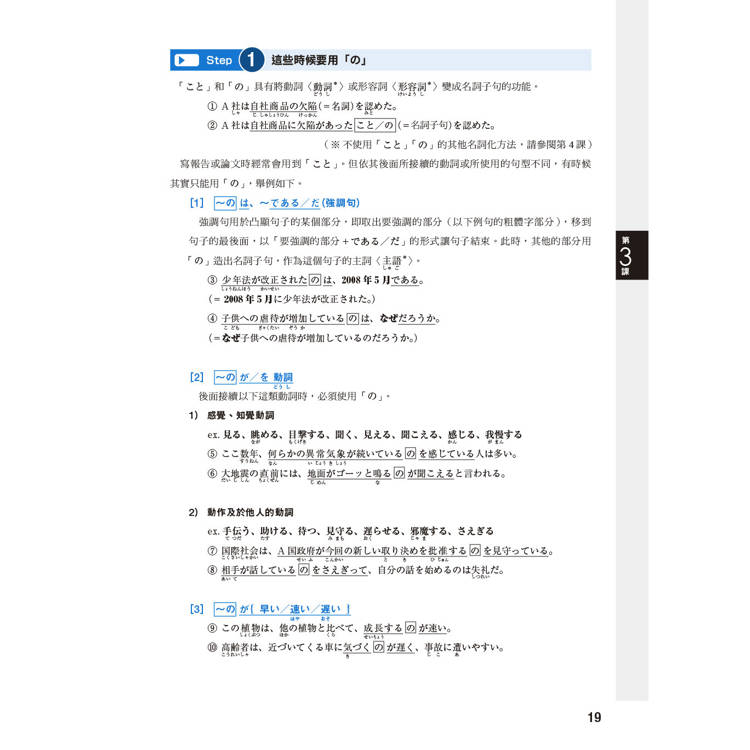 ・全書共有14課,1到7課以單句文法為主,8到14課則與段落或篇章相關。