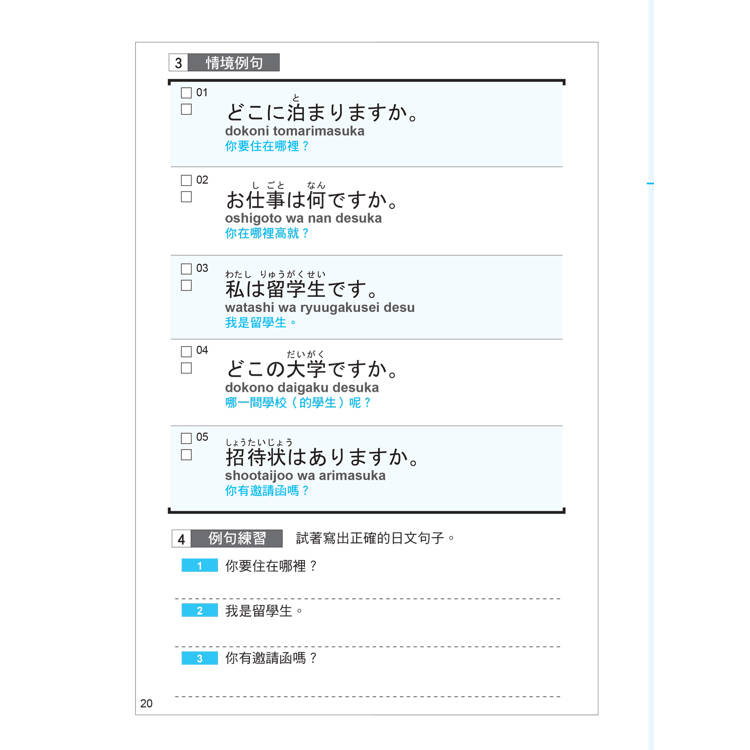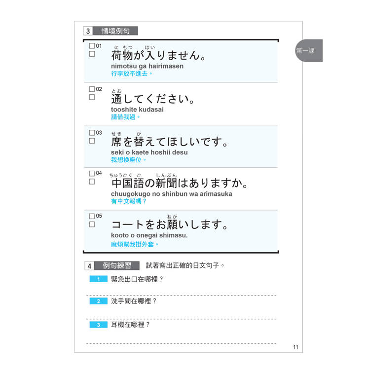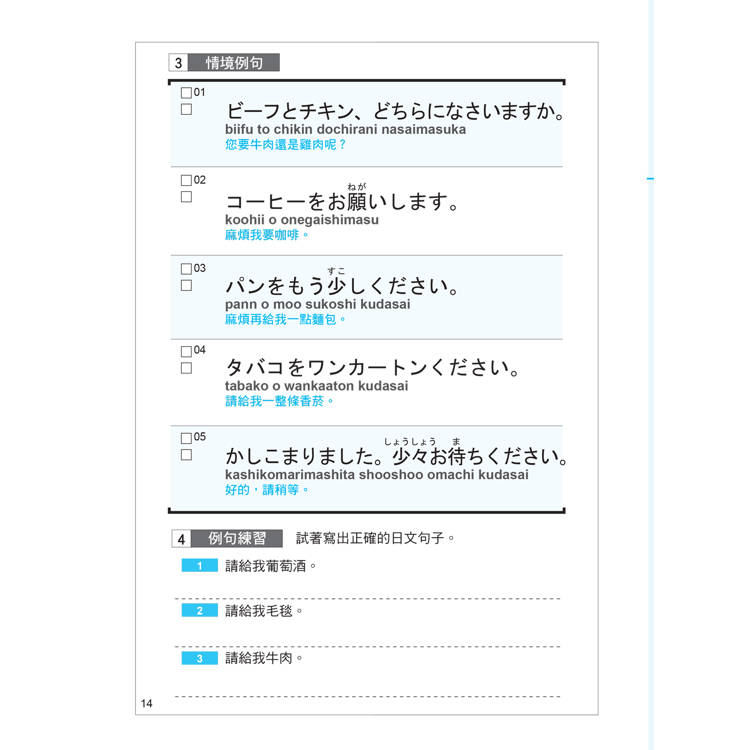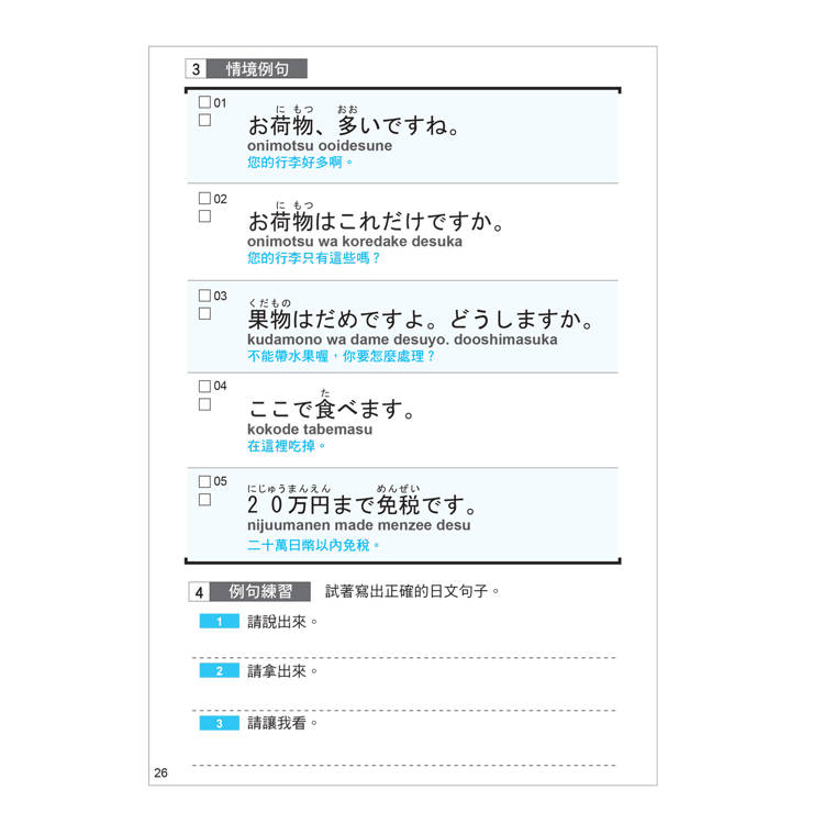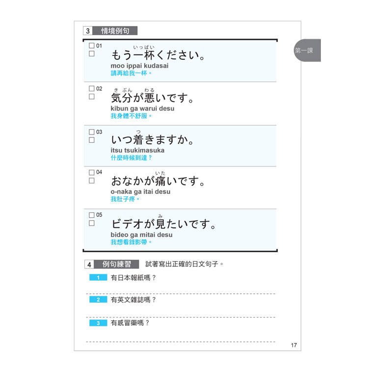 「反覆練習」是最簡單有效的記憶方法!本書在每課結尾都設有「練習寫單元」,讓您在學完句型和單字後,馬上動手寫寫看,學習效果立竿見影!