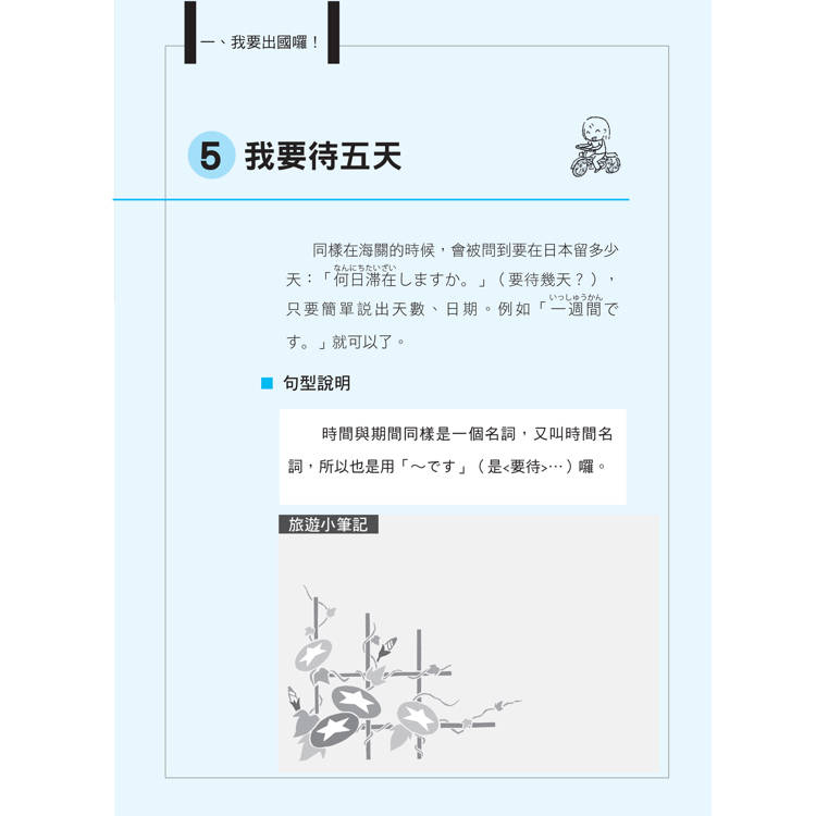 《大字版 旅行中的日本語》還為計畫自助遊的您設計了「旅遊情報站」,包含赴日旅行的實用資訊,讓您在學習日文的同時,掌握旅遊相關資訊。無論您是否身在日本,都能從中獲得寶貴的知識與靈感!
