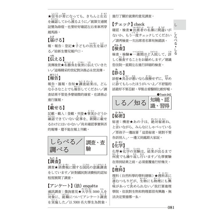 ★ 最強搜尋王:50音順主題查詢,隨時撒網聯想整組單字!忘了單字也不怕,打開這書,立刻找回相關用法!關鍵字排序超便利,隨查隨得,一查深刻,讓單字牢牢印在腦中!