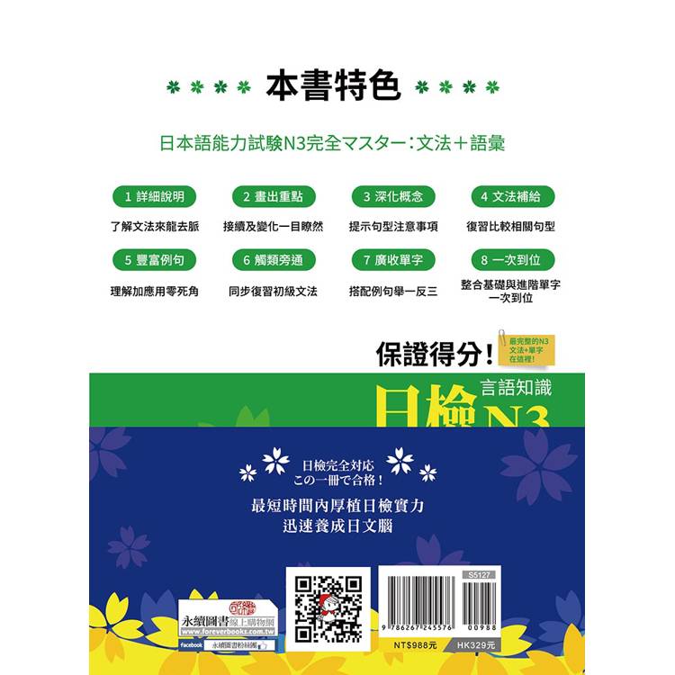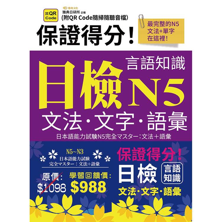 保證得分!日檢言語知識-N5~N3文法.文字.語彙(QR)套書組