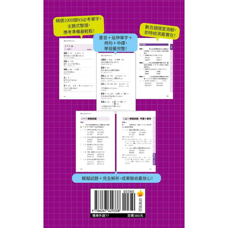 因應隨時隨地皆能背誦、準備N3單字的需求,特別製作成好攜帶的小開本。讓您不管是在捷運裡還是公車上,都可以把握零散時間,厚植單字實力!