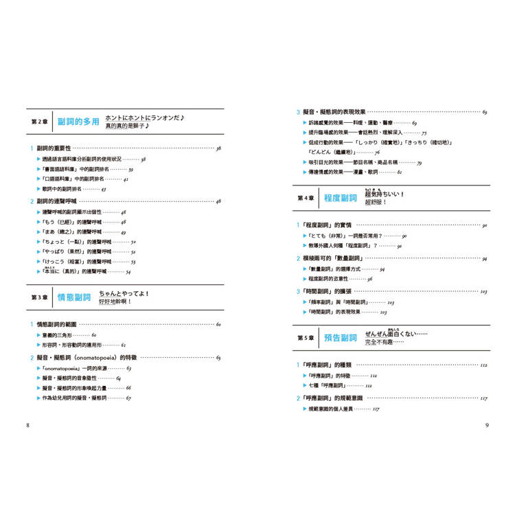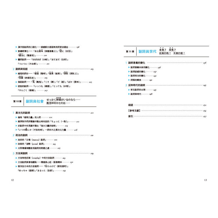 不僅限於語法,更將副詞與擬音擬態詞、方言、流行語、乃至政治語言、世代用語等社會文化現象結合,深入探討副詞如何反映日本人的心境、關懷與溝通策略。