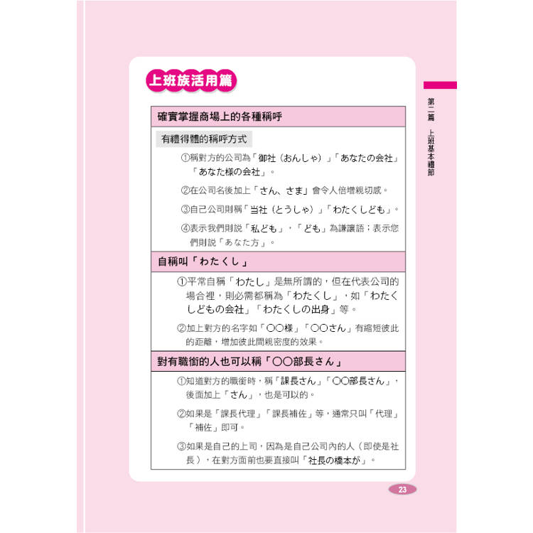 你最好要能根據對方的身份地位、關係遠近,適當地切換不同的敬語。這不僅顯得自己有禮得體,更讓人們對您稱讚不已,職場上的交際也必定順暢無比。