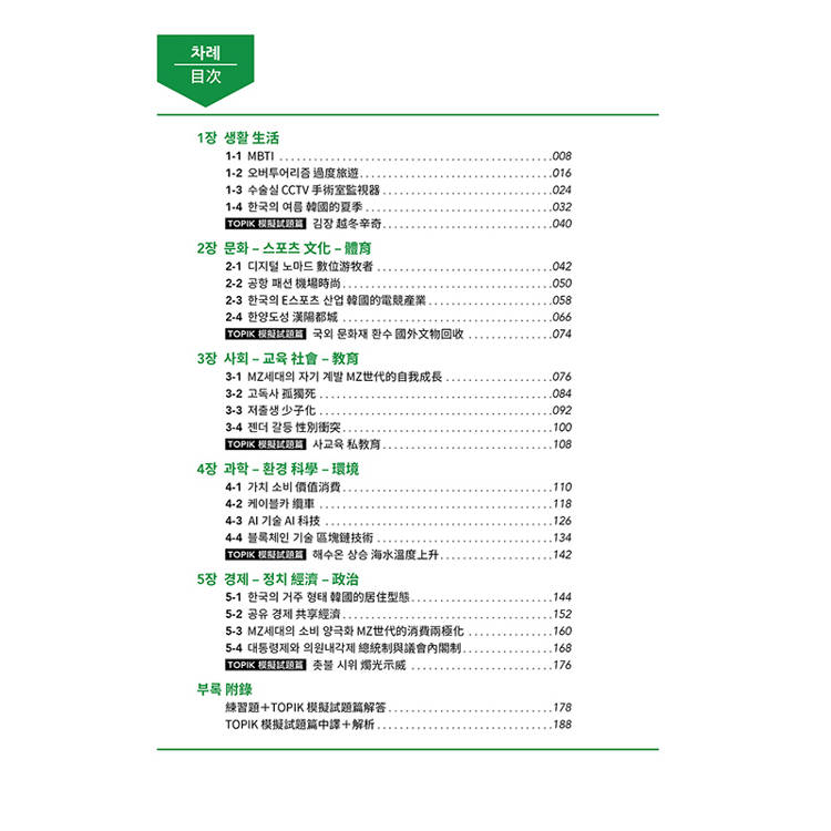 韓國企業如何結合MBTI打造新產品?偶像明星的「機場時尚」為何引發爭議?MZ世代的消費傾向為何趨於兩極化?本書收錄生活、文化、社會、經濟、政治等不同主題文章,讓你學韓文的同時,也能深入了解當今韓國社會的重要議題。