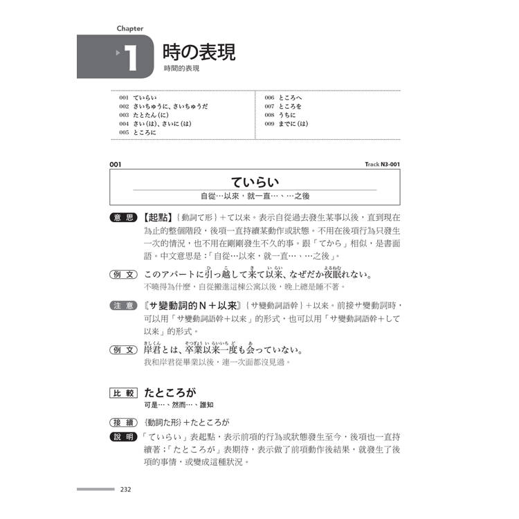 ・一張清晰的文法地圖:從N5到N1,685項文法無縫接軌,建立完整體系。