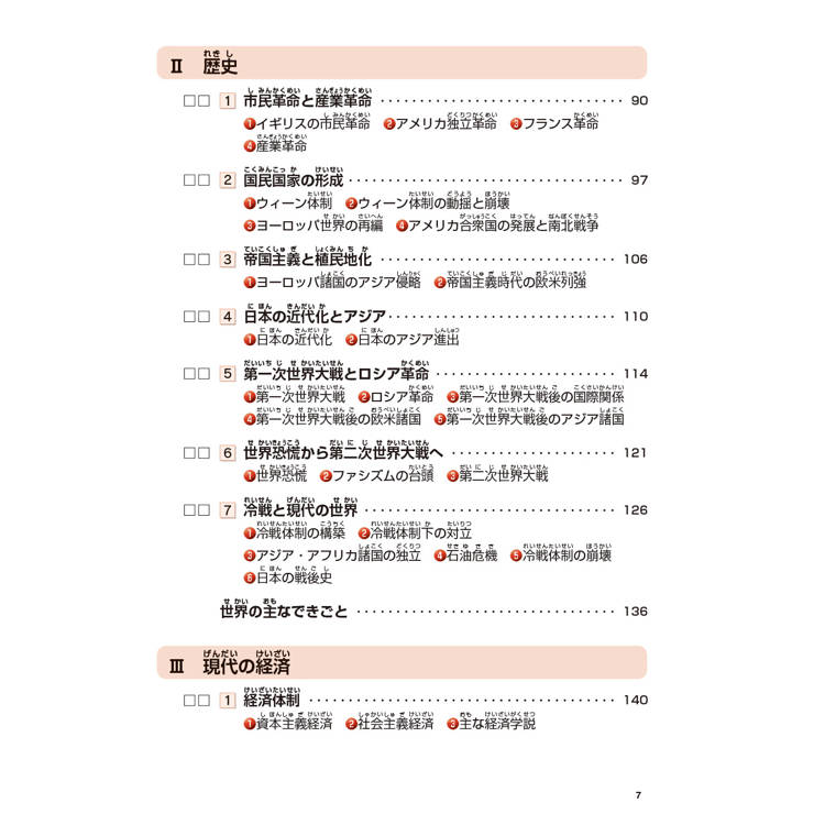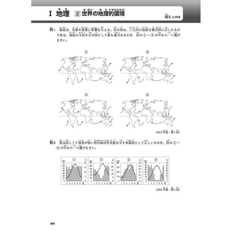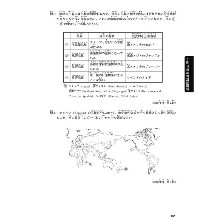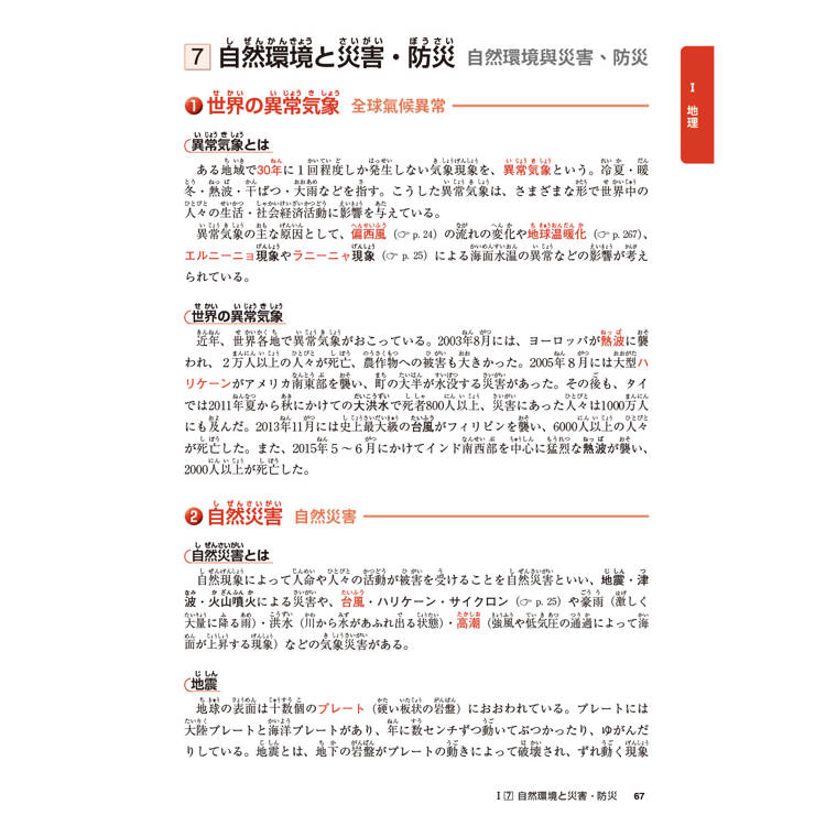 要搭配圖表、地圖一起看。EJU「総合科目」的出題經常有圖表或地圖,所以要邊看課文邊了解圖表所表達的概念,並且要能在地圖上準確掌握國家與都市的位置,這一點極為重要。