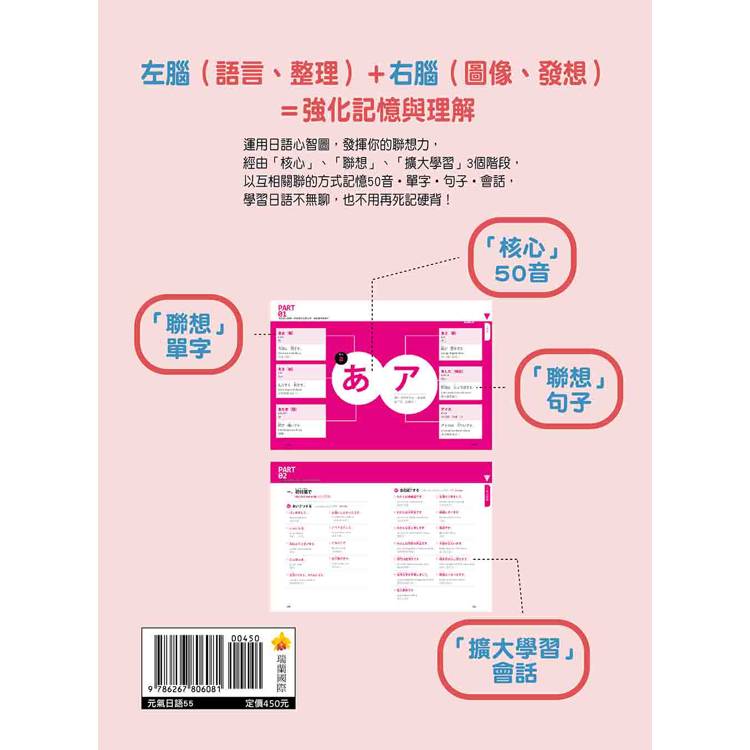 特色1:從認識日語、50音、單字、例句到會話,用「日語心智圖」的脈絡聯想學習,最好記!