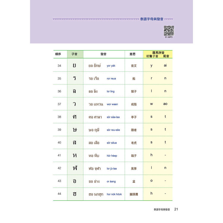 從泰語字母、發音開始講解,並有音檔輔助,從零開始也能學