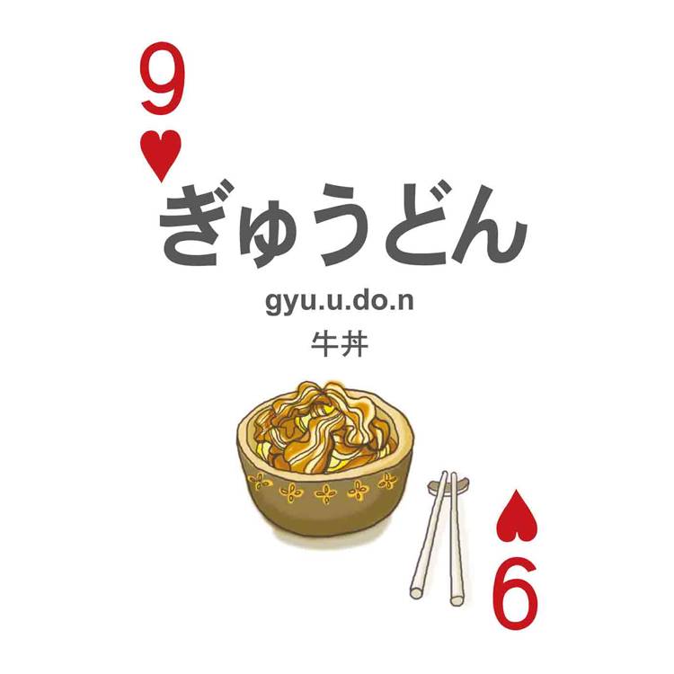 打開撲克牌玩一玩!每張撲克牌都有日語、中文解釋,加上羅馬拼音輔助發音,只要跟著讀、照著唸,日語一點都不難!