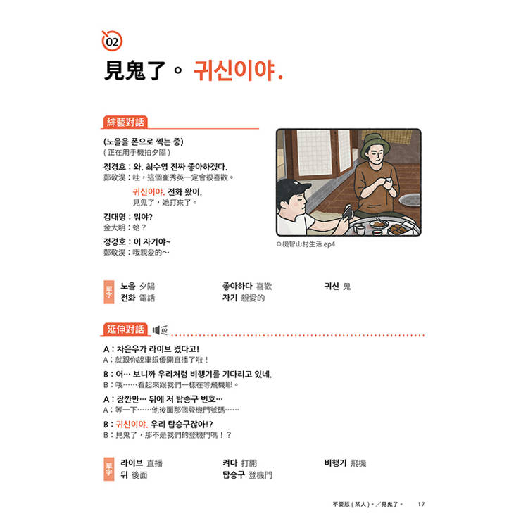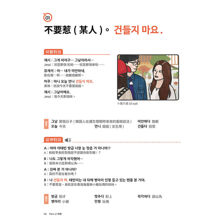 想看韓國綜藝節目學韓文,該從哪句開始學才好?本期特別收錄20個韓語新手最好入門的對話短句,並搭配1篇綜藝對話、1篇延伸對話和精選單字,讀的時候還會被詼諧無厘頭的對話內容逗笑!